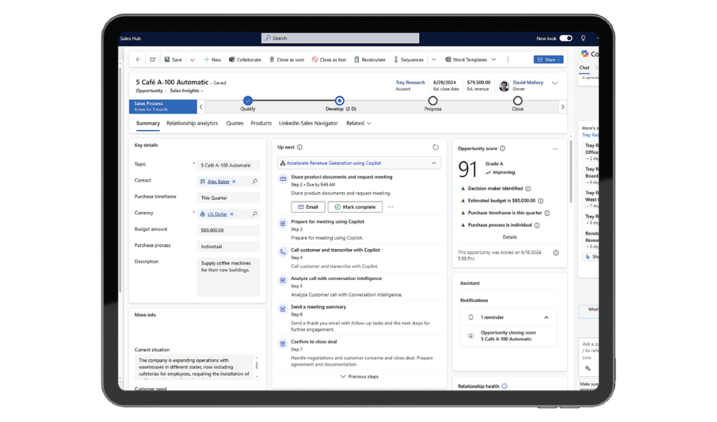 Microsoft Dynamics 365 Sales is a powerful CRM solution that helps businesses build stronger customer relationships, close more deals, and drive revenue growth. It uses AI-driven insights to prioritise leads, automate sales processes, and forecast performance with real-time data.