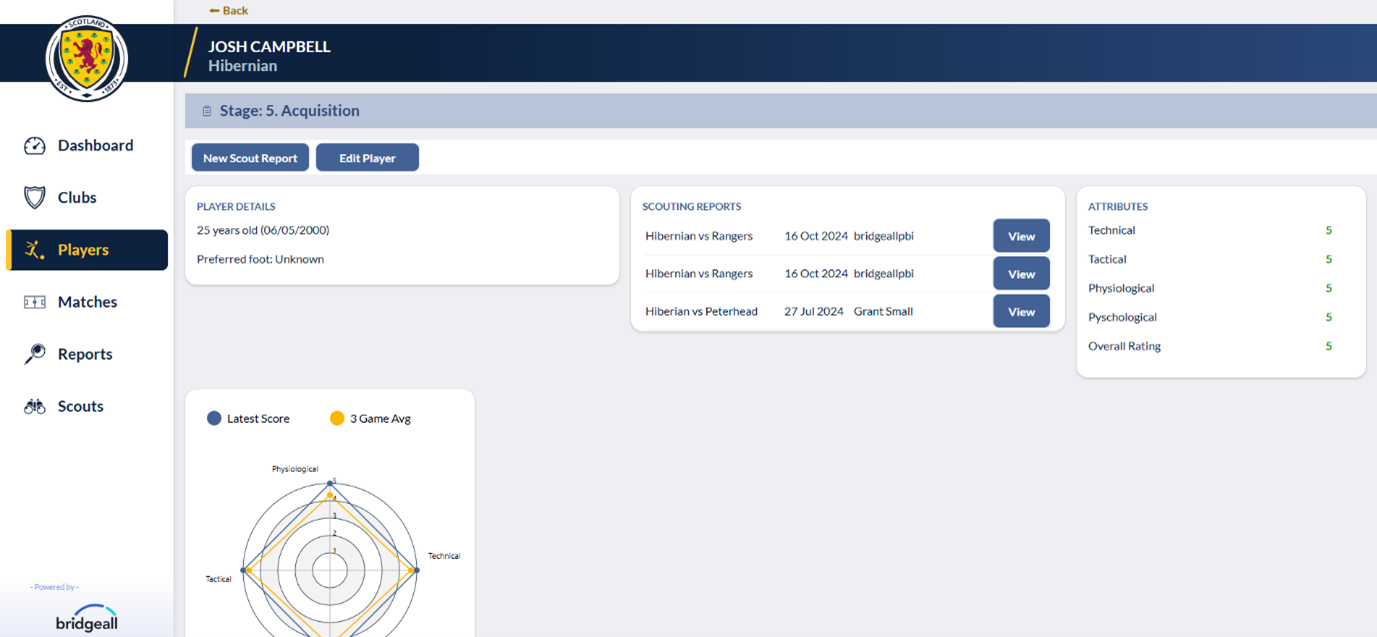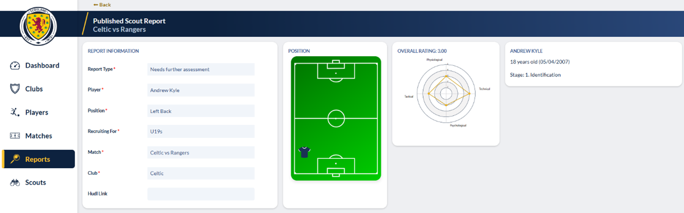 It will take the player through the initial scouting stage all the way through to the final stages where they will be integrated into the Scotland national squad. It allows scouts to apply the sophisticated grading model the SFA applies to every player from the Under 14s all the way to the National Men’s A Squad.